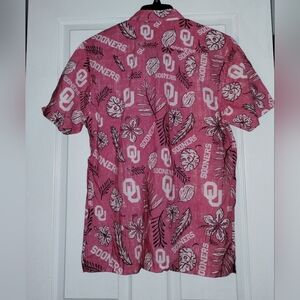 Oklahoma Sooners Wes Willy men's College Hawaiian style shirt.Short sleeve button down vintage floral.Features left chest pocket and pleated back yoke.