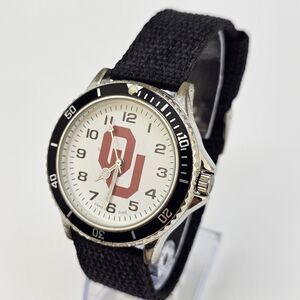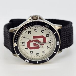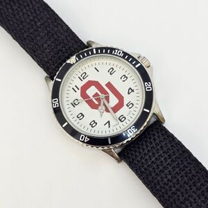 Oklahoma Sooners Men's Watch 40MM White Dial Black Canvas Bands New Battery