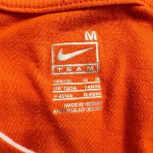 The product is a women's orange Nike long sleeve shirt in size medium, featuring the official logo of the Oklahoma State Cowboys. This officially licensed shirt is perfect for female fans of the college football team, providing a stylish and comfortable way to show support for their favorite team. Made by Nike, this shirt is a must-have for any Oklahoma State Cowboys fan looking to add to their collection of fan apparel.