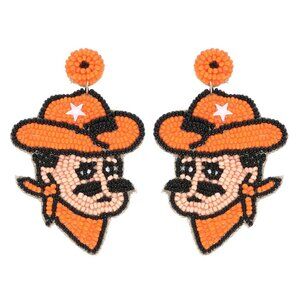 Oklahoma State Pistol Pete Orange Seed Beaded Football Fan Earrings Sports NEW