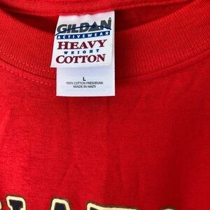 Oklahoma State tee shirt in a size large. Gildan. Armpit to armpit measures 21”. Shoulder to hemline 29”. No rips, tears or stains. 100% cotton. Machine wash warm. Facts of Oklahoma. State bird.