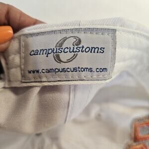 Embroidered, you can tell its been worn but not much, due to a slight yellowing at the head band, made by Campus Customs.