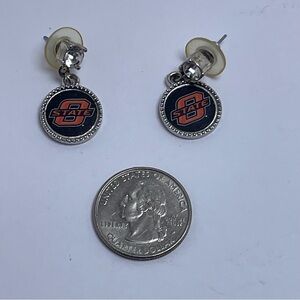 Stylish dangle earrings featuring the Oklahoma State University logo. Perfect for fans and alumni. Silver tone with orange and black design and clear rhinestone accents. Excellent preowned condition. Bundle with other OSU jewelry from my closet to save!