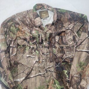 Ol' Tom Technical Turkey Gear Green Camouflage Camo Shirt MEDIUM M Button Down