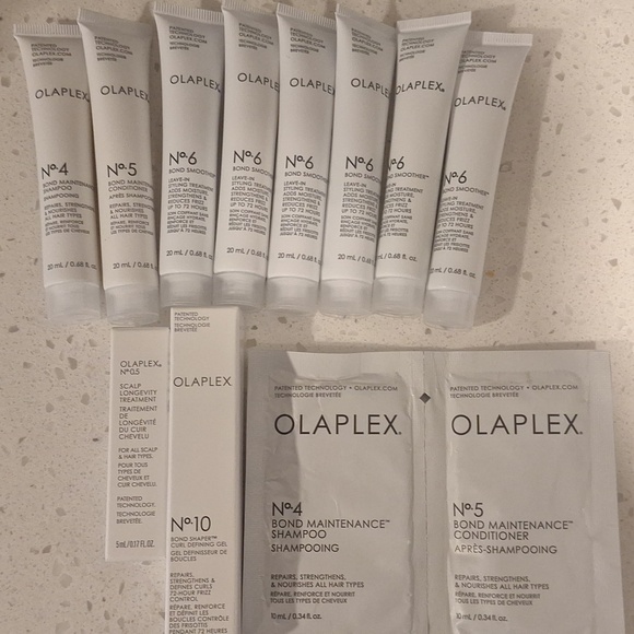 12 count set. Samples of No. 4 and 5 tubes and samples, No. 5 scalp longevity treatment, 6-No. 6 bond smoother leave in treatments and No.10 bond shaper curl defining gel.