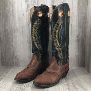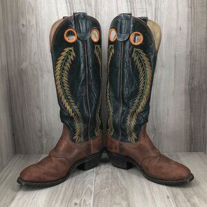 Olathe Cowboy Boots Mens 8D Buckaroo Tall Green Brown Leather Pull On Western