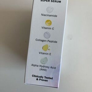 Take your skin care routine to a new level with Olay Super Serum Trial Size, a powerful yet lightweight formula that will leave your skin looking healthier from day 1. Even on the go. What makes our Super Serum so super? By combining the power of five ingredients into one little bottle, our formula provides anti-wrinkle and hydration benefits for skin that is firmer and has better texture. It absorbs quickly without leaving behind a sticky or tacky feeling. And you'll instantly notice 24 hours of hydration, more even-looking skin in two weeks, and your visible lines smoother in one month. Olay Super Serum's five powerful ingredients are: Niacinamide Vitamin C Collagen Peptide Vitamin E Alpha Hydroxy Acid (AHA) Plus, this anti-aging serum is clinically tested and proven, because great skin care is our superpower. How to Use: Cleanse your skin to remove dirt, oil, or makeup. Smooth face serum evenly over cleansed face and neck, morning and night. Follow up with Olay Vitamin C with SPF facial moisturizer for day, and Olay Super Serum Night Repair for nighttime use.