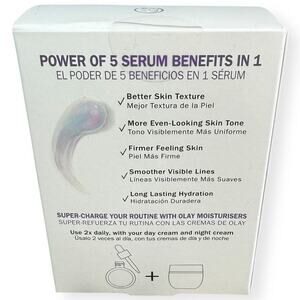 Brand new in box Olay Super Serum, 30ml. This multitasking serum delivers the benefits of 5 serums in 1: better skin texture, even tone, firmer skin, smoother lines, and long-lasting hydration. Formulated with powerhouse ingredients including Niacinamide, Vitamin C, Collagen Peptide, Vitamin E, and Alpha Hydroxy Acid (AHA). Clinically tested and suitable for daily use, morning and night.