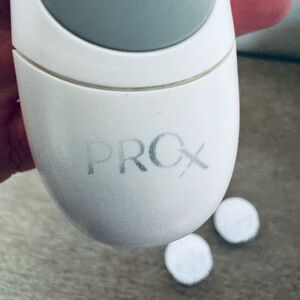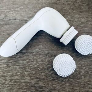 Olay ProX battery powered facial cleansing brush in great preowned condition. Comes with 2 brand new spare refill brush heads as shown. Requires 2 AA batteries (not included).