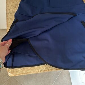 Olaya Soort dress. Navy with black piping. Function pockets. Built in shorts. Full zip. Sweat wicking fabric. NWT