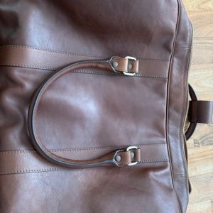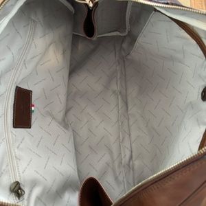 Brand new, never used, (no tags)Full grain Italian leather travel bag with large zip closure . Adjustable and removable leather shoulder strap with pad. Protective antique brass feet on the bottom. Inside one compartment, lining printed "made in italy", zip pocket and laptop pocket closed with strap.