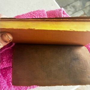 Set of vintage books with leather and cloth covers. Features black, green, and gold colors.