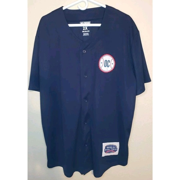 Old Chicago #76 SIZE 2X World Beer Tour Navy Blue Button Front Baseball Jersey
