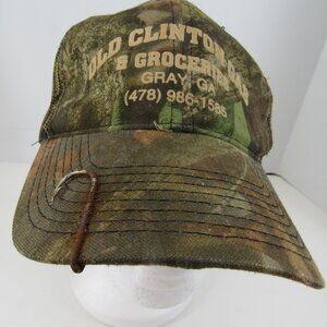 Old Clinton Gas & Groceries Logo Gray Ga Mesh Back Camo Adj Snapback Cap Hat