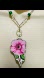 Once a cherished piece of fine china, this pendant now graces a necklace with its delicate pink floral design. The silver-toned rustic metalwork frames the blossom, drawing the eye and evoking tales of transformation. Twin green beads add a touch of elegance, harmonizing with the pendant's vibrant hues.