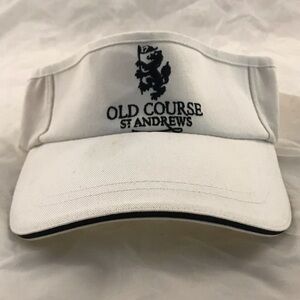 H6 Hat/Cap/VISOR St Andrews Adult Adjustable Hook & Loop Strap Old Course St Andrews type logo in black on face /white