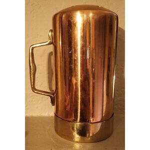 Previously-owned Old Dutch International copper and brass cheese shaker. Some surface wear from previous use, but no major dent or defect. The shaker stands 6" in height x 3-1/4" in diameter. The interior is clean, so I suspect it was used for decoration only.