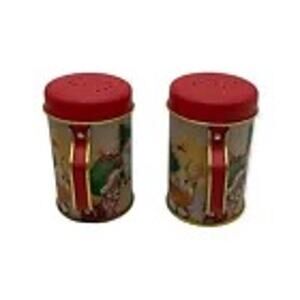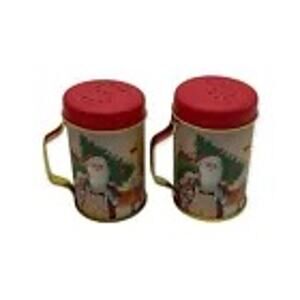 Old Fashioned Santa Christmas Scene Tin Salt & Pepper Shakers Preowned with Box