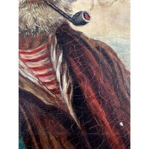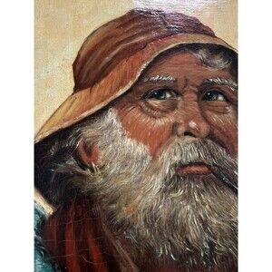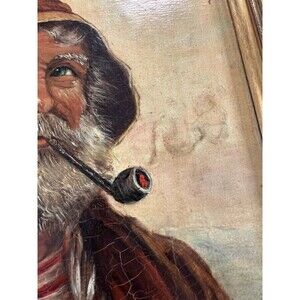 This vintage acrylic painting on canvas depicts an old fisherman, signed by the artist Jesse in 1964. The realist artwork captures the essence of a working life at sea, with themes of nautical and coastal landscapes. The framed piece showcases intricate details and a medium size of 14-3/8 in length and 17.5 in height, making it a unique and timeless addition to any art collection. With its authentic production techniques, this original painting offers a glimpse into the history and culture of the United States during the post-war period. This painting has lots of patina and crackling. The colors are very vibrant. Please see pictures to see the signs of wear and age.