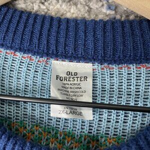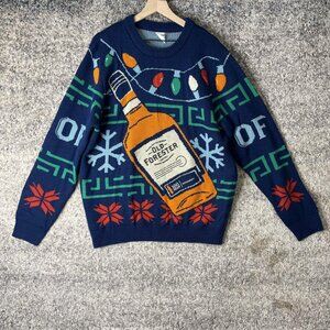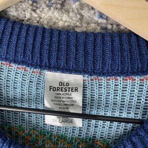 Old Forester Sweater Mens 2XL Blue Ugly Christmas Whiskey Bottle Knit Pullover