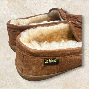 Old Friend Men’s Sheepskin Lined Moccasins Slippers Size 15M – Chestnut Brown