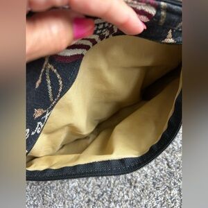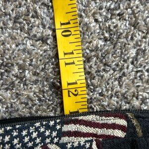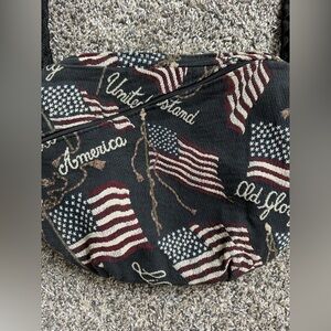 Unique oval shaped American Patriot Tapestry purse with the Stars and Stripes. “United We Stand” and “Old Glory” printed on it. Braided strap. Good clean condition.