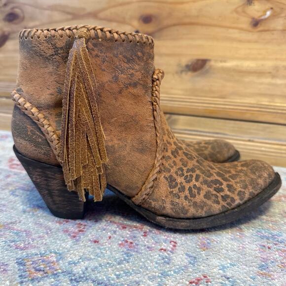 Old Gringo Adela Women's 8.5B Leopard Fringe Distressed Leather Ankle Boots