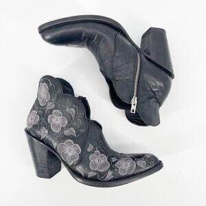Old Gringo Black Pansy II Floral Embroidered Western Cowgirl Ankle Boot size 6.5