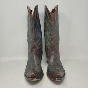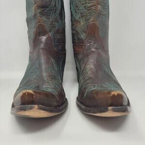 Old Gringo Boots Womens 9.5B Brown Green Leather Western Cowboy Snip Toe Rodeo