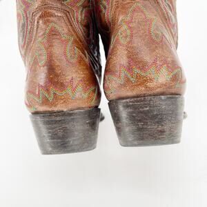 Old Gringo Brass Brown Nevada Multicolor Stitching Western Cowgirl Boot size 7.5
