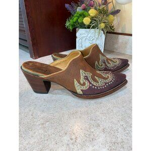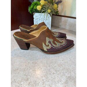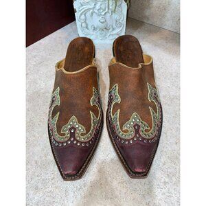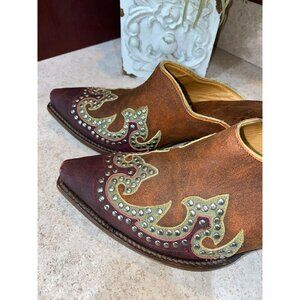 Old Gringo Burgundy Red, Rust & Green Studded Leather Western Cowgirl Mules 7