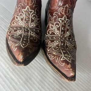 Need tips repaired. Missing two crystals as shown. Actual boot and shaft are still in great condition apart from that. Elegant Old Gringo boots crafted from premium leather. Made in Mexico. Perfect for any occasion.