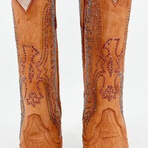 The Old Gringo Eagle Swarovski Mango Boots are a complete show stopper! The peachy orange distressed leather is decorated with feminine swarovski crystals in the shape of eagles. The crystals reflect several colors creating a rainbow effect, adding sparkle and pizzazz