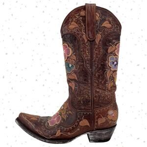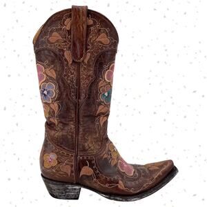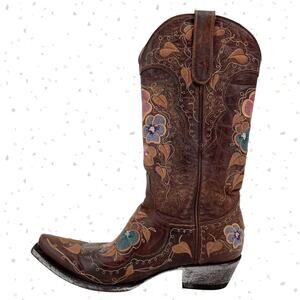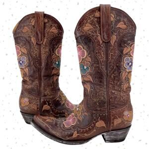 Old Gringo Pansy Western Boots Brown Leather Floral Embroidered Cowboy Size 8.5