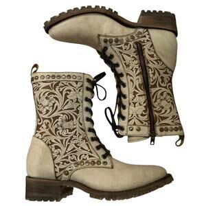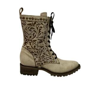 Old Gringo Roxton Boots Bone Leather Floral Lace-Up Western Style Size 9