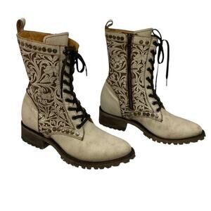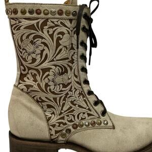 Old Gringo Roxton Boots Bone Leather Floral Lace-Up Western Style Size 9