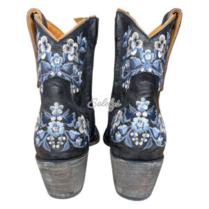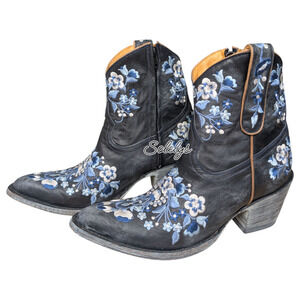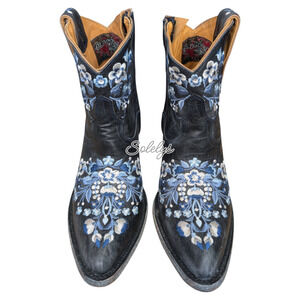 Old Gringo Sora Country Blue Floral Embroidered Leather Cowgirl Ankle Boot 7.5B