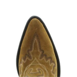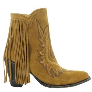 Stylish tan heeled boots. Features fringe detailing. Perfect for a bold look.