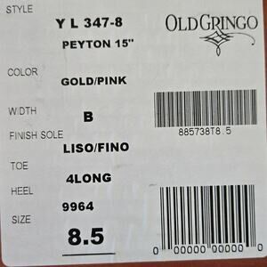 Old Gringo Yippee Ki Yay Peyton Pink Gold Tall Boots Size 8.5