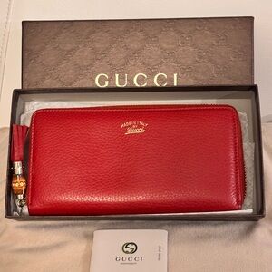 Old Gucci Leather Long Bifold Wallet #193686G42