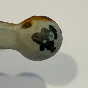 Old iron fence painted chipped finial -- the style is ball tip quad spear. Cool aged patina and fun curiosity for the garden! Or you may need to replace a finial on your iron fence! It's heavy because it's iron! Measures 3.5 inches tall. So cool.