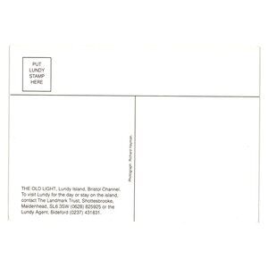 Scenic postcard featuring The Old Light on Lundy Island in the Bristol Channel. An iconic and historic sight preserved by The Landmark Trust.