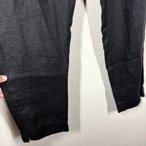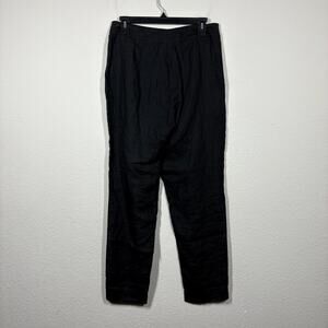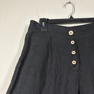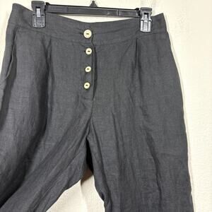 Old Linen Mill Button Linen Pants Black Pleated High Waisted Straight