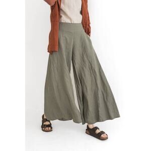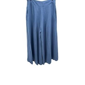 Old Linen Mill Women's Blue High Waisted Palazzo Wide Leg Long Linen Pant Size M