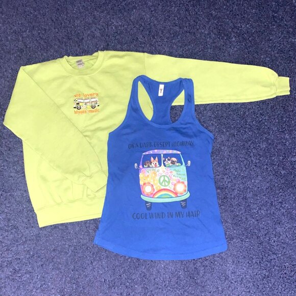 Old Lovers Hippie Music Sweatshirt Dog Hippie Van Racerback Top Peace Rainbow