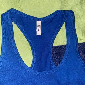 This vibrant set includes a lime green crewneck sweatshirt and a royal blue racerback top, perfect for expressing your inner hippie. Comfortable and stylish for casual wear.