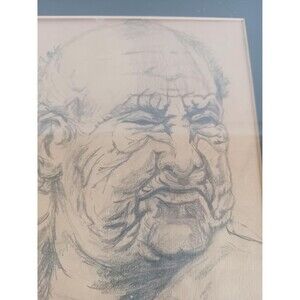 Old Man Holding His Glasses Framed Pencil Portrait Unknown Artist