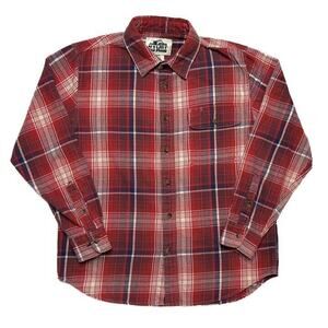 Old Mill Plaid Flannel Shirt Red Long Sleeve Button Up Men's Medium Outdoor