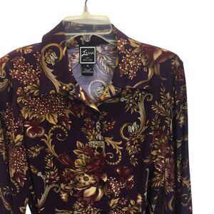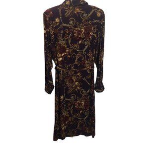 Zernie LNY New York Shirt Dress Womens 10 Purple Floral Button Belted Rayon
