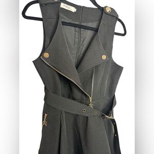 Old Money Grunge Black Belted Bow Accent Mini Dress Size Large